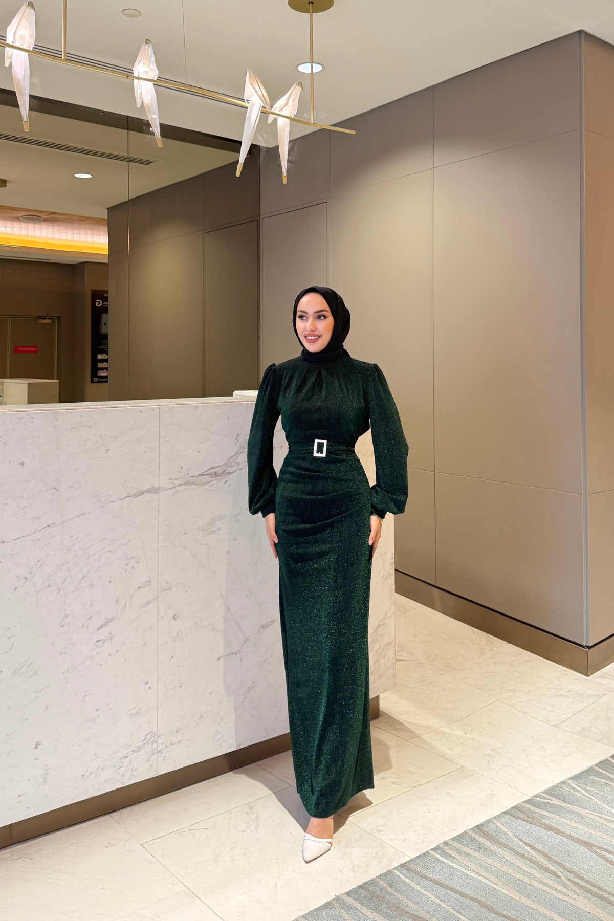 Simli Seçil Tesettür Elbise Yeşil (44SECIL)